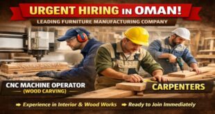 A leading furniture manufacturing company in Oman has announced urgent hiring for skilled professionals as part of its workforce expansion plan for 2026. This recruitment drive is aimed at experienced candidates in interior and wood works who are ready to join immediately and build a stable career in the Gulf. …
