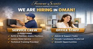 A leading fragrance service provider, Forever Scents, has announced new job openings in Oman for Service Crew and Office Staff. Known for delivering premium aroma solutions to luxury hotels and commercial spaces, the company is expanding its professional team to support growing operations. These vacancies offer an excellent opportunity for …