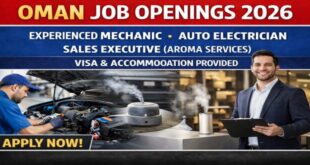 Oman continues to be a preferred destination for skilled professionals seeking stable employment, competitive salaries, and a high standard of living. Recently, new Oman job openings 2026 have been announced for Experienced Mechanics, Auto Electricians, and Sales Executives in Aroma Services. These opportunities are ideal for candidates with technical expertise …