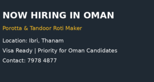 Read More »Porotta & Tandoor Roti Maker Job in Ibri, Oman